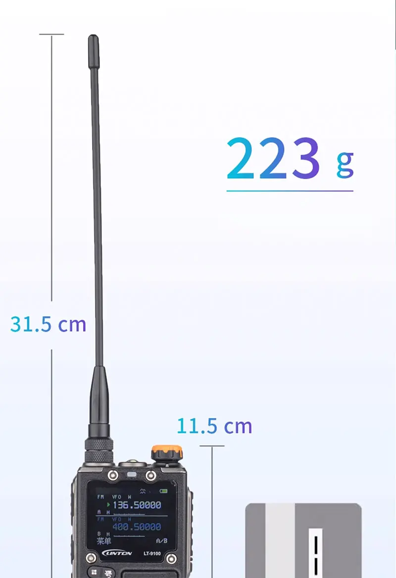 Dimensions: Walkie-talkie: 115x60x30mm, antenna: 200mm