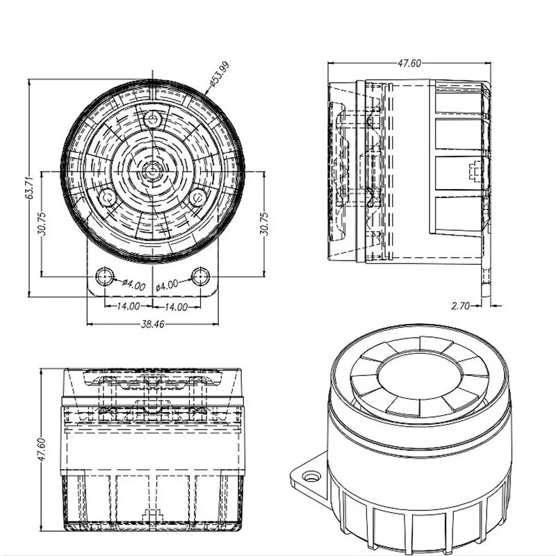 2. Alarm shell is made of ABS flame retardant material,which can be connected to the main engine of alarm outlet.