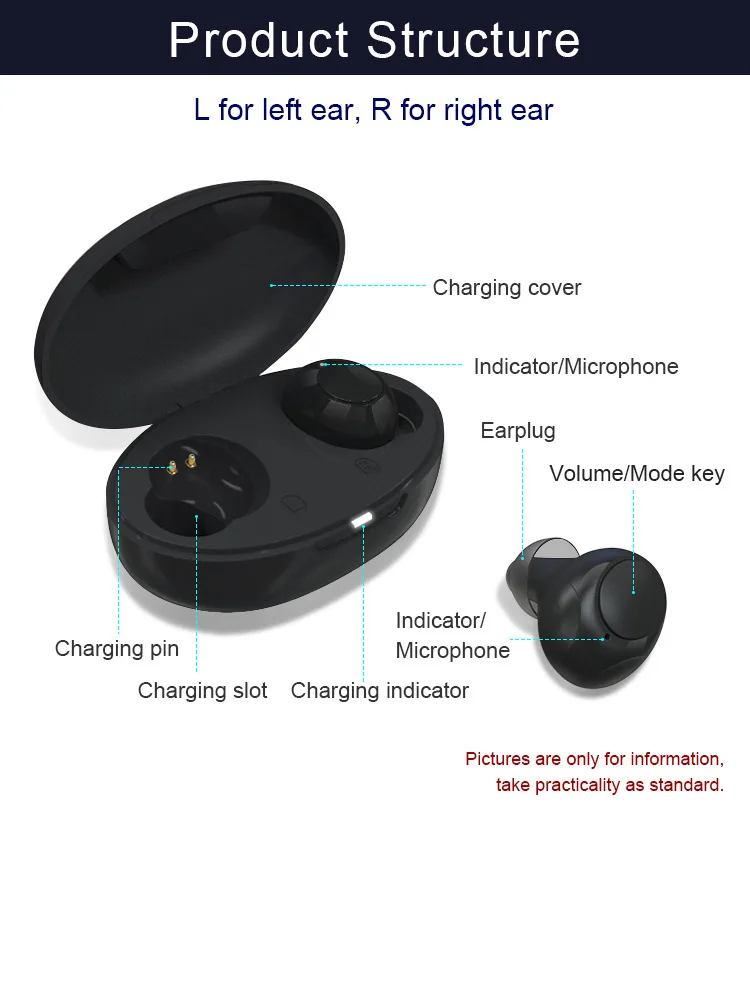 Magnetic Noise Cancellation Audiphone Invisible Wireless Loudspeaker Sound Amplifier Touch Control Earbuds For Hard of Listening