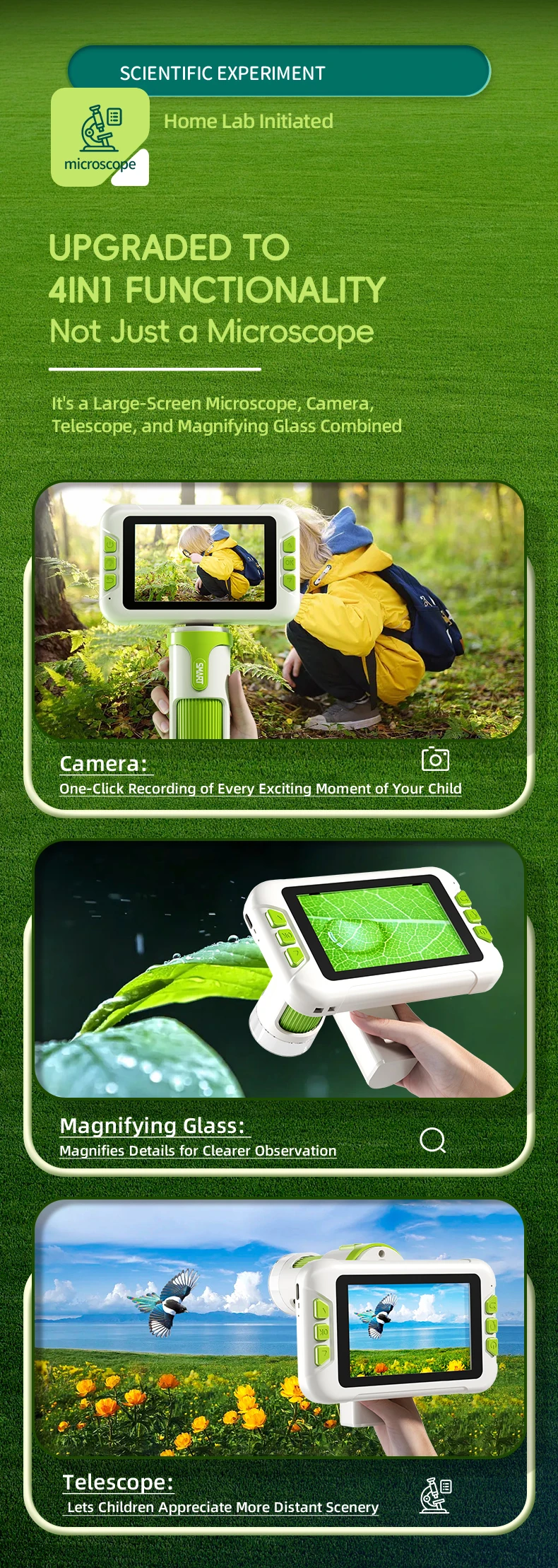 Microscope for Kids Children Microscope with 3.97 Inch Screen 1600x Zoom Mini Handheld Microscope Camera Christmas Birthday Gift