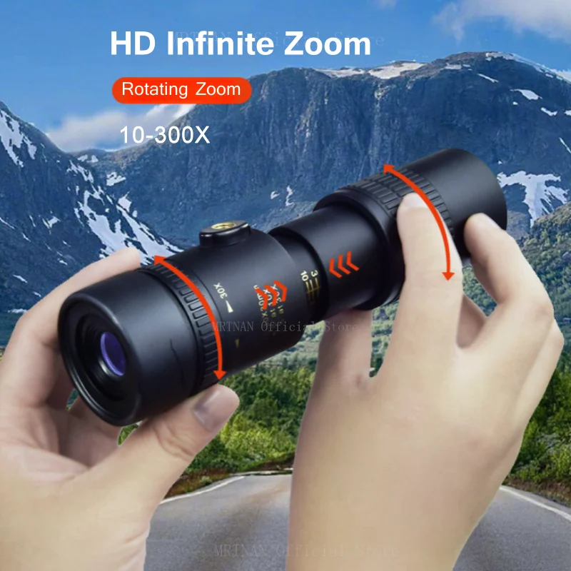 Monocular Telescope 10-300x40 High-power HD Zoom Mini Telescope With phone clip Super Telephoto Zoom Telescope Hunting Camping
