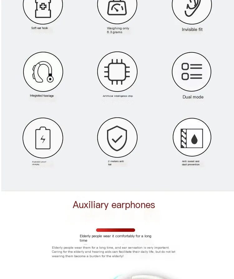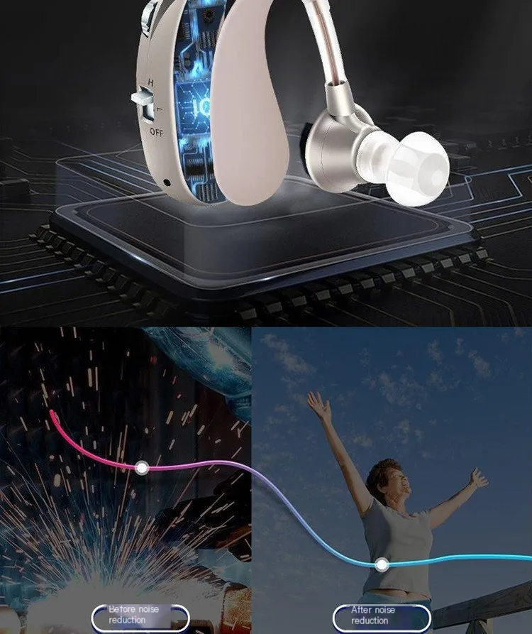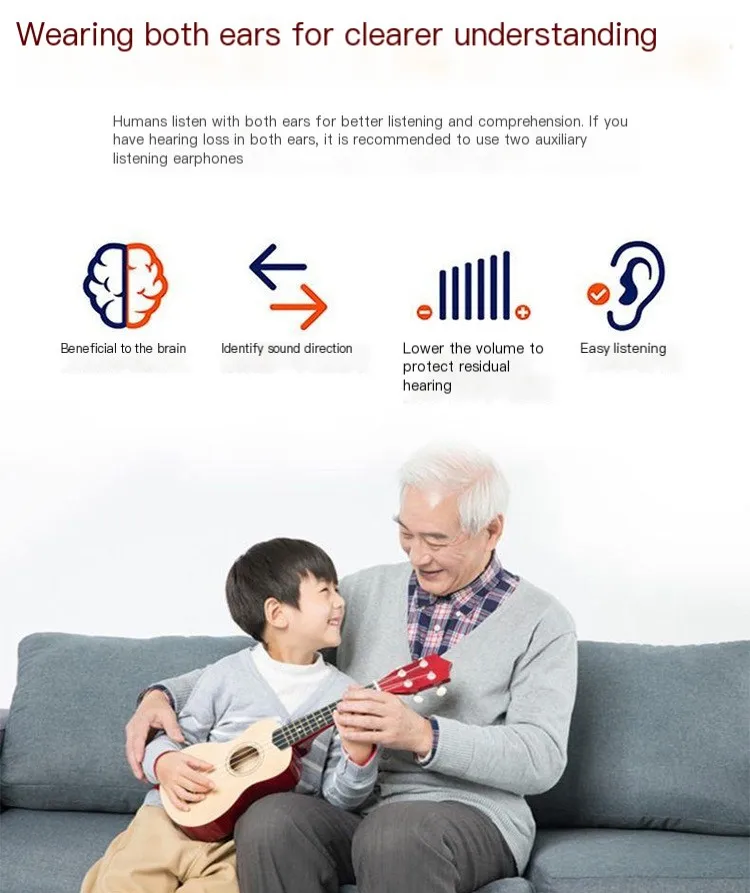 NEW Hearing Aid Earphones Ear Hook Charging Comfort Assisted Listening Headset Adjustable Dual Sound Earbuds For Elderly People