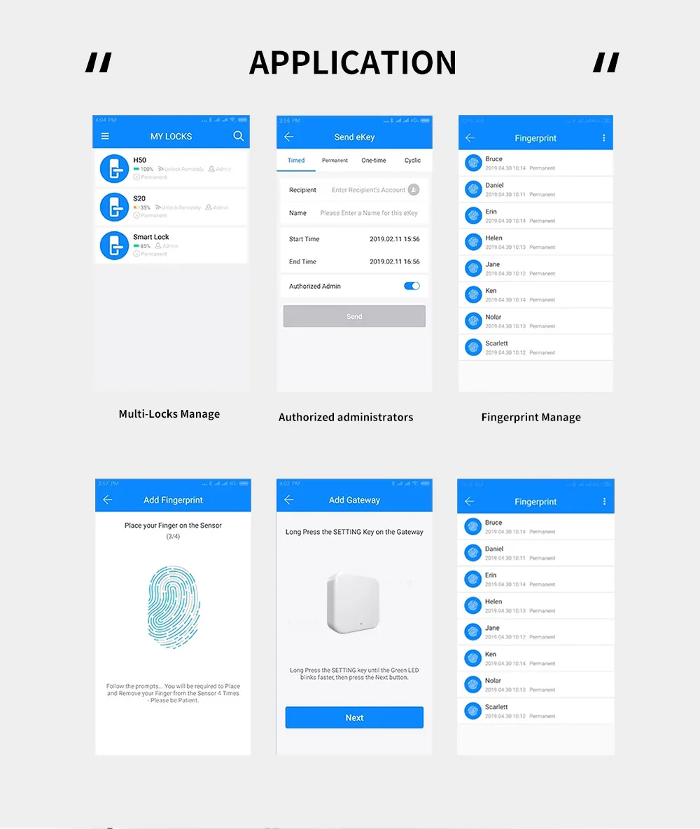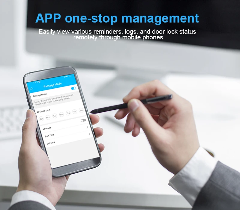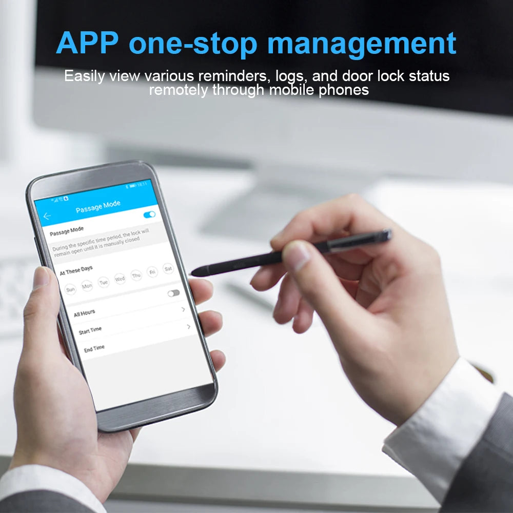 4.TT lock app; Support remote control and view unlock records,the unlock password can be authorized through the App the validity period of the password can be set freely.