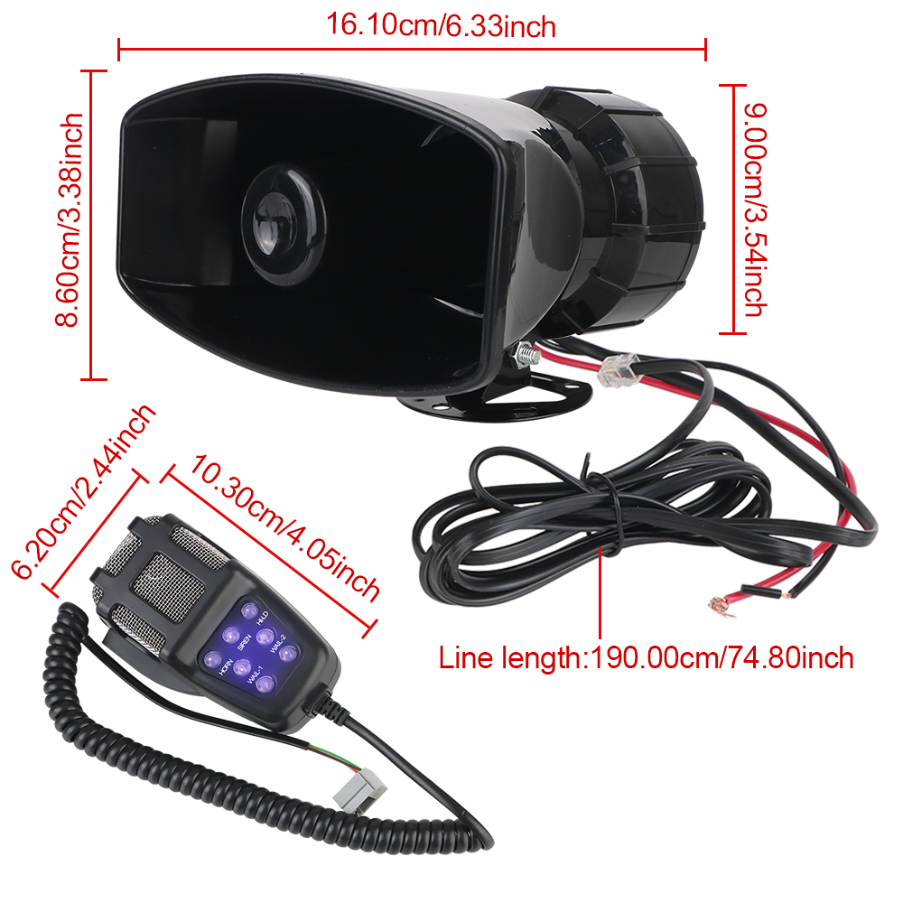 7 siren sounds:Car siren speaker can make 7 alarm loud and clear sounds.