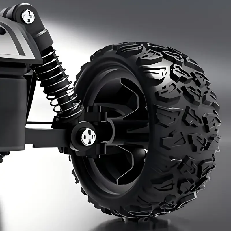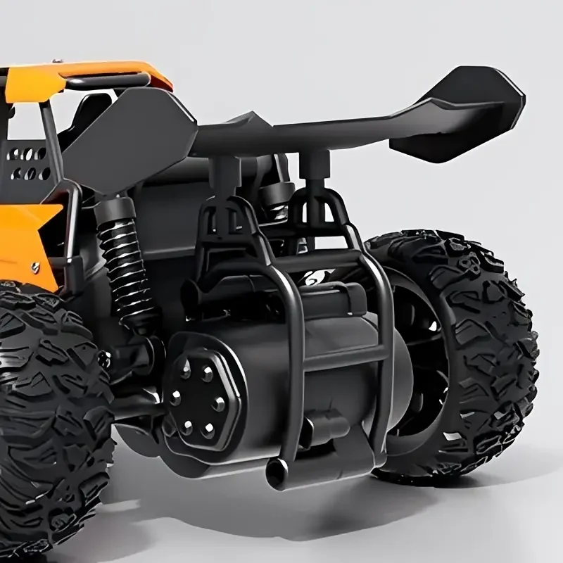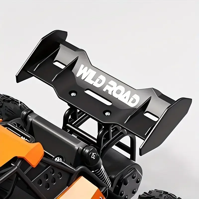 Alloy Housing, All Terrain Ability, Compact Yet Robust: Made of robust alloy material, this rc car is durable and resistant. All four wheels are equipped with shock absorbers that provide optimal shock protection and protect the vehicle body. Thanks to its robust construction and non-slip tires, the monster truck can handle various terrains remotely, ensuring an exciting gaming experience both indoors and outdoors.