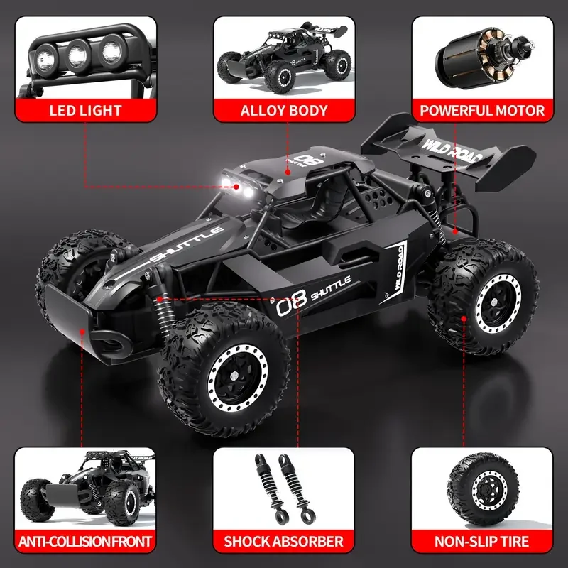 2.4GHz Radio System: This advanced 2.4GHz radio system provides reliable control over a long range of up to 262 feet. It enables numerous players to join in simultaneously. Gather your friends and immerse yourselves in the fun of RC adventures together.