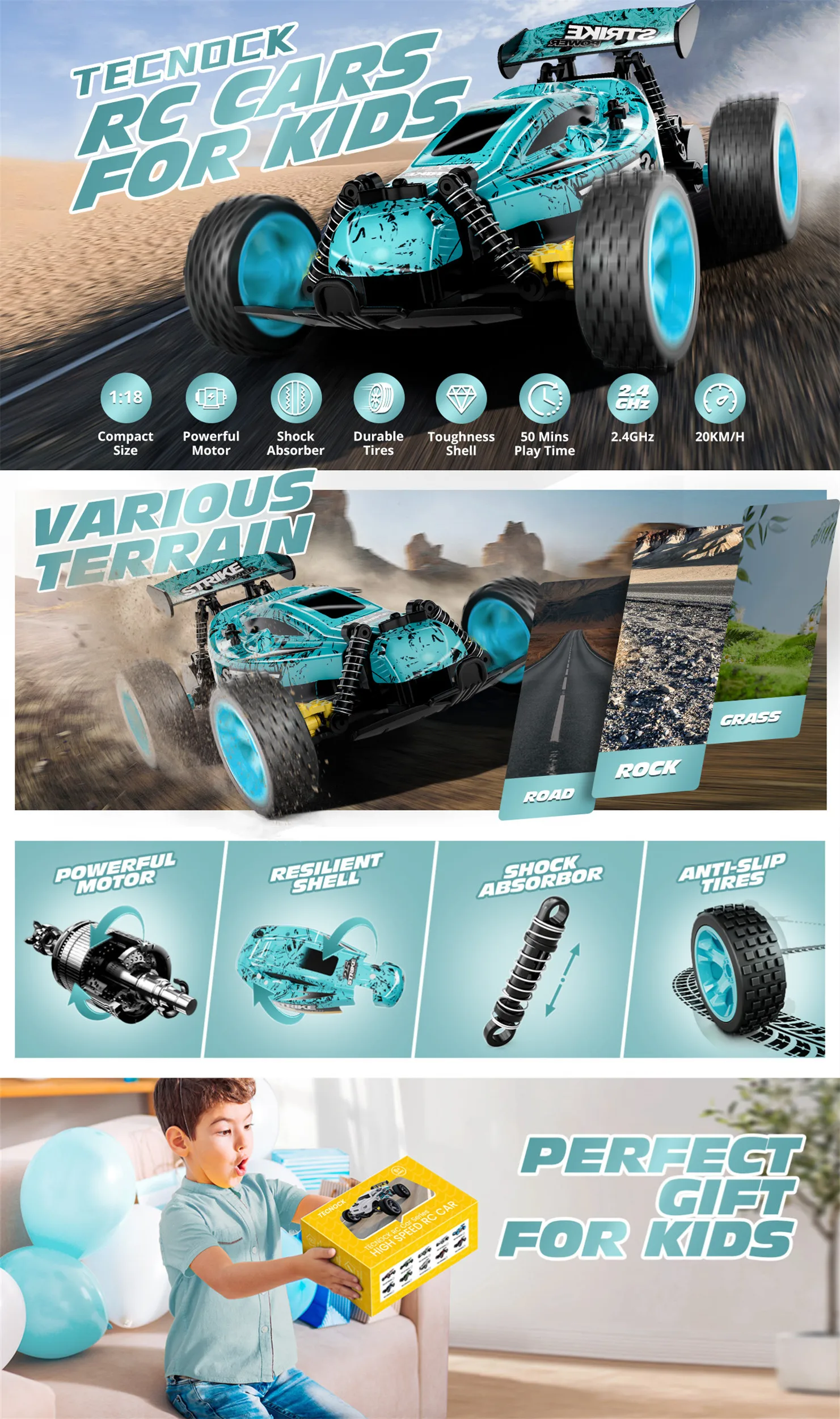 RC Cars Remote Control Car for Kids, 1:18 Scale 20 KM/H 2WD Offroad Buggy, 2.4GHz RC Racing Car,50 Mins Playtime, Toys Gifts