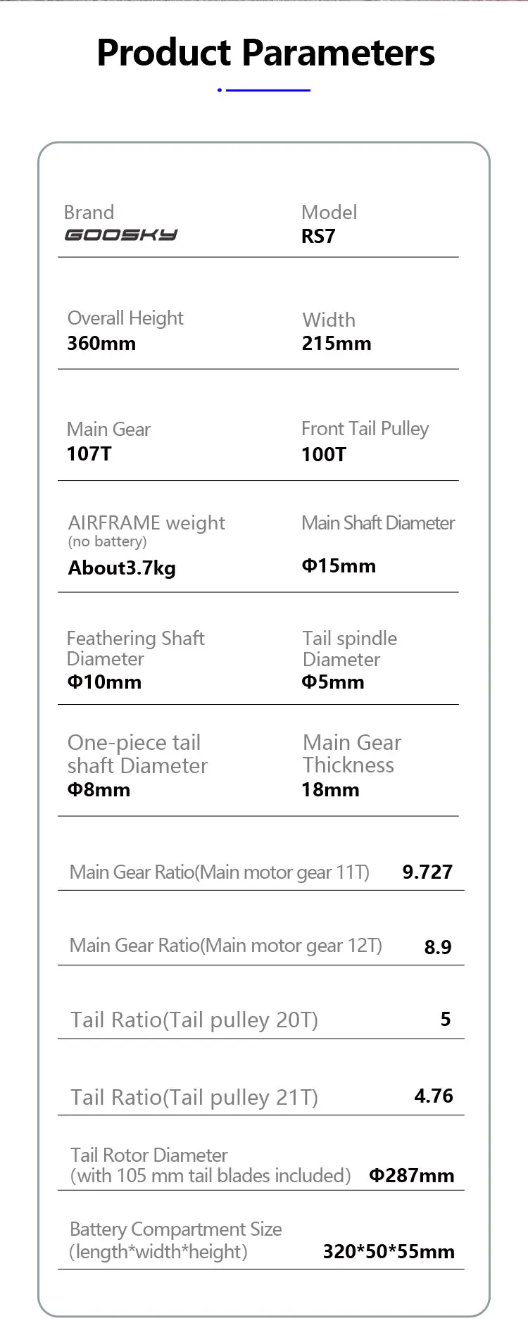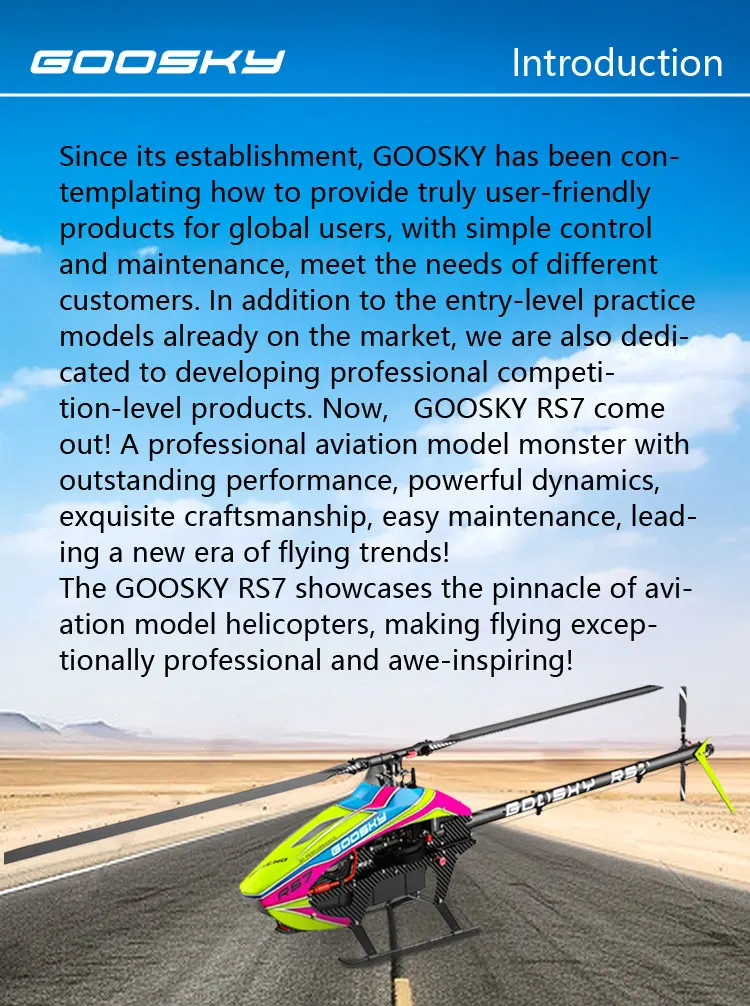 The GOOSKY RS7 showcases the pinnacle of aviation model helicopters,making flying exceptionally professional and awe-inspiring!