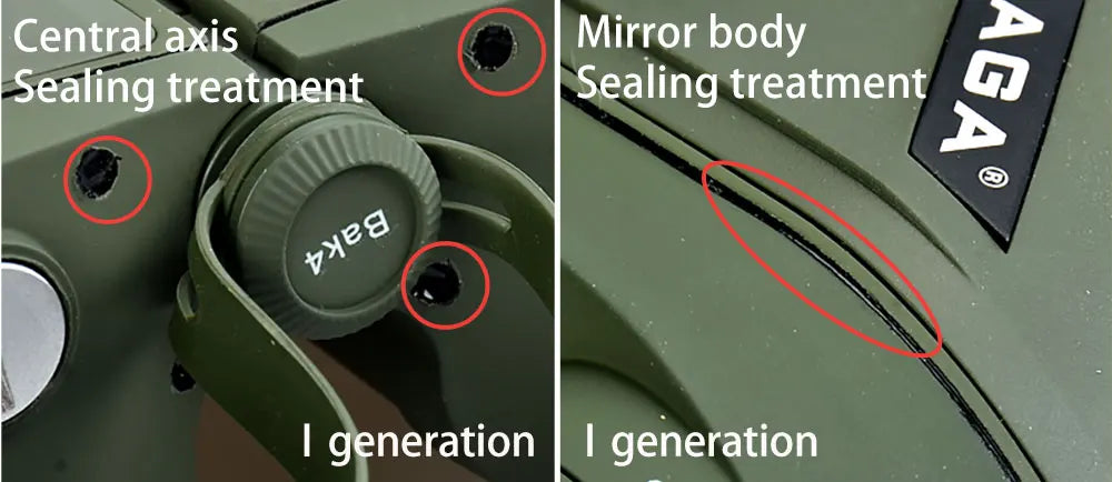 ☞Ⅰ generation :Half-pack structure,The middle part is rubber,Other parts are binoculars,Overall binoculars with seams,Waterproofing at seams