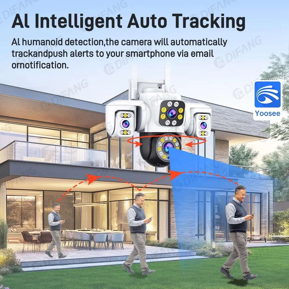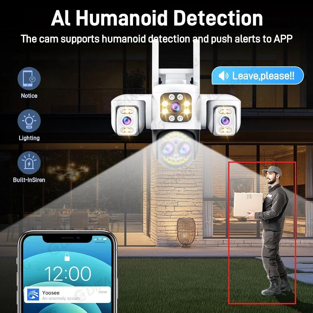 Security Protection 8K WiFi Camera Outdoor Four Lens Triple Screen 10X Zoom 360° CCTV Surveillance Ai Yoosee 16MP Security Cam
