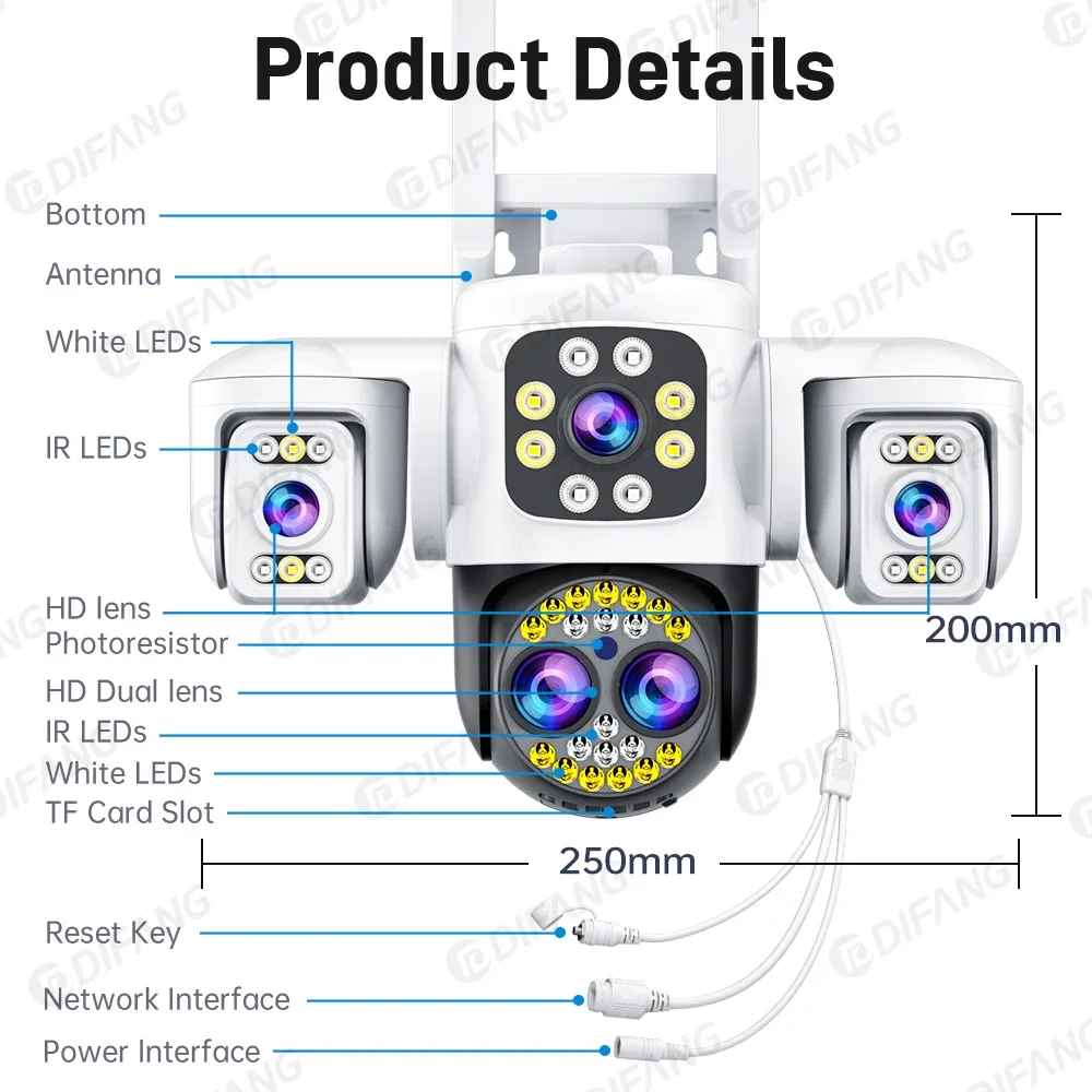 8K 16MP WiFi Camera 10X Zoom Four Len Three Screen CCTV Security Protection Video Surveillance Yoosee Video Surveillance 360°