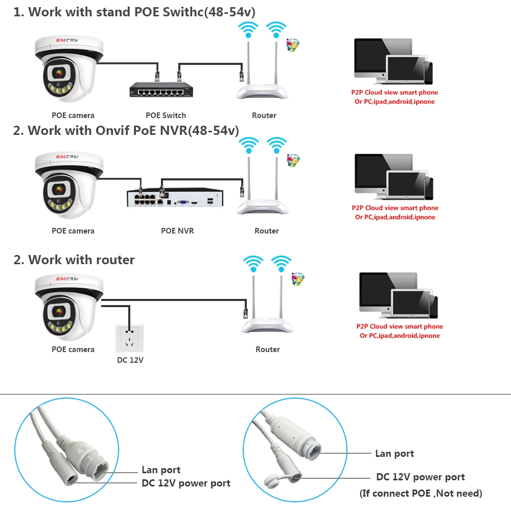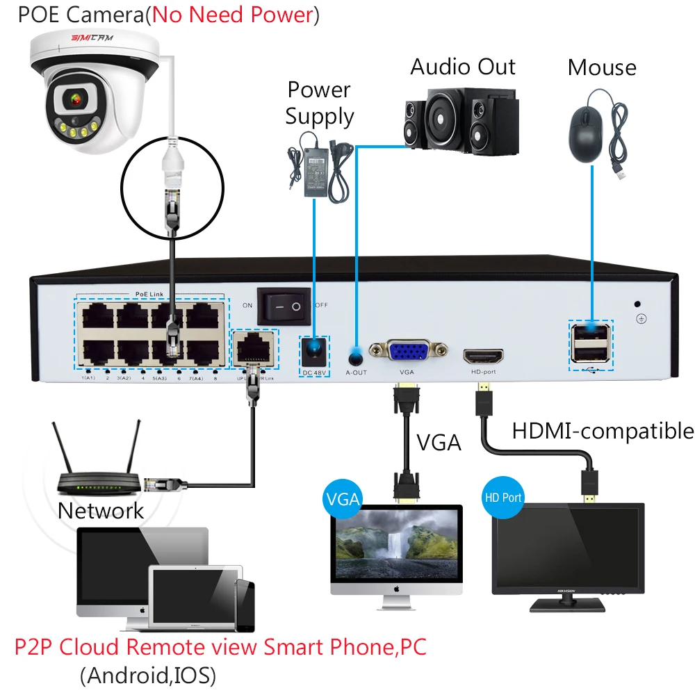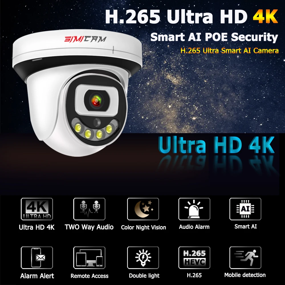 SIMICAM 4K Security IP Camera Surveillance POE/12V 8MP/5MP/4MP Witch Two Way Audio Color Night Vision Onvif AI Smart Alarm Xmeye