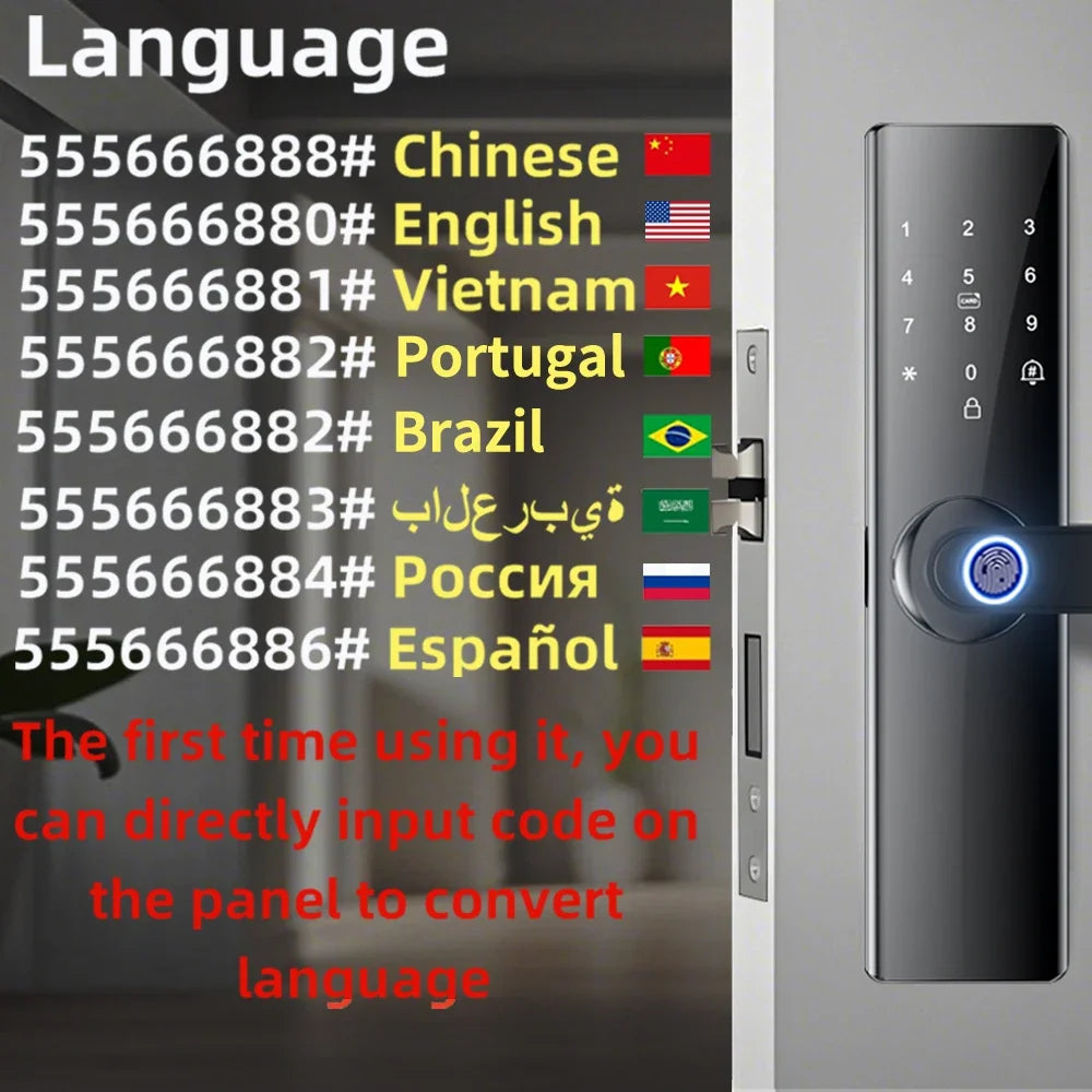 Smart Card Key Access and USB Emergency Charging Smartlock Smart Electronic Door Lock Fingerprint Biometrics Application Control