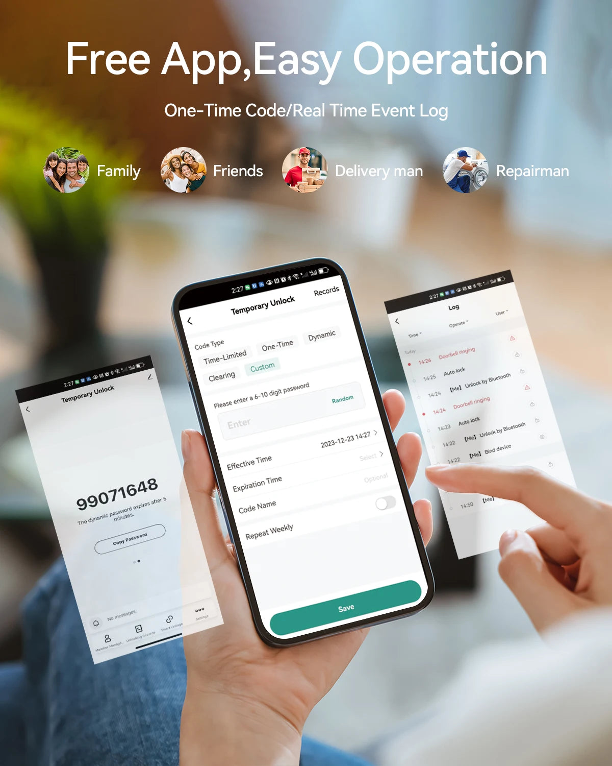Knows who has the access to your lock and how. Add or delete users any time you want.