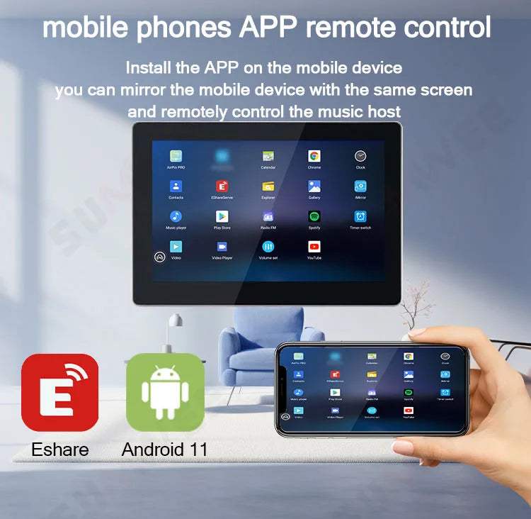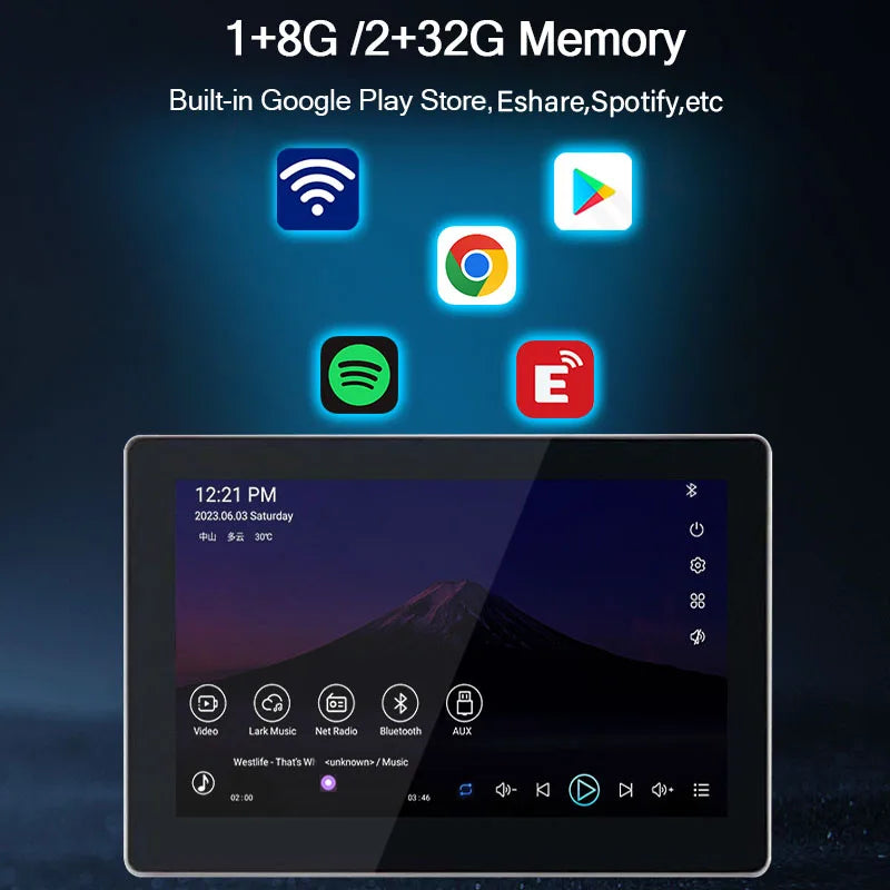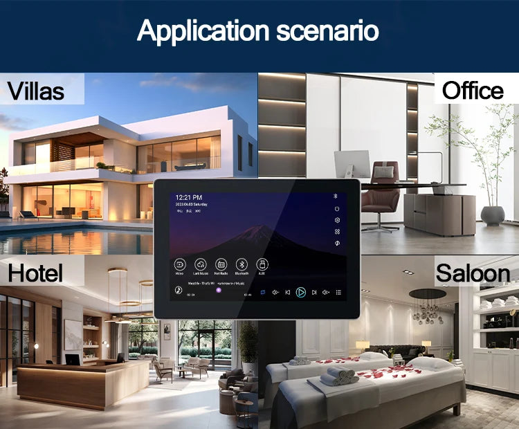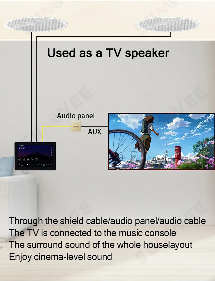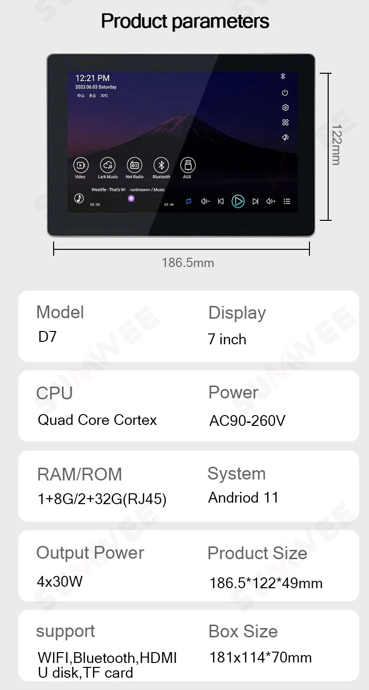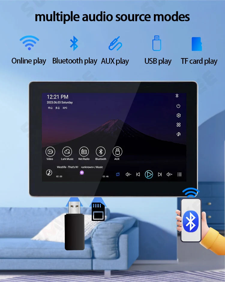 Smart home audio system 7 inch touch screen in wall amplifier WIFI Bluetooths sound music player ALEXA control panel Stereo Amp