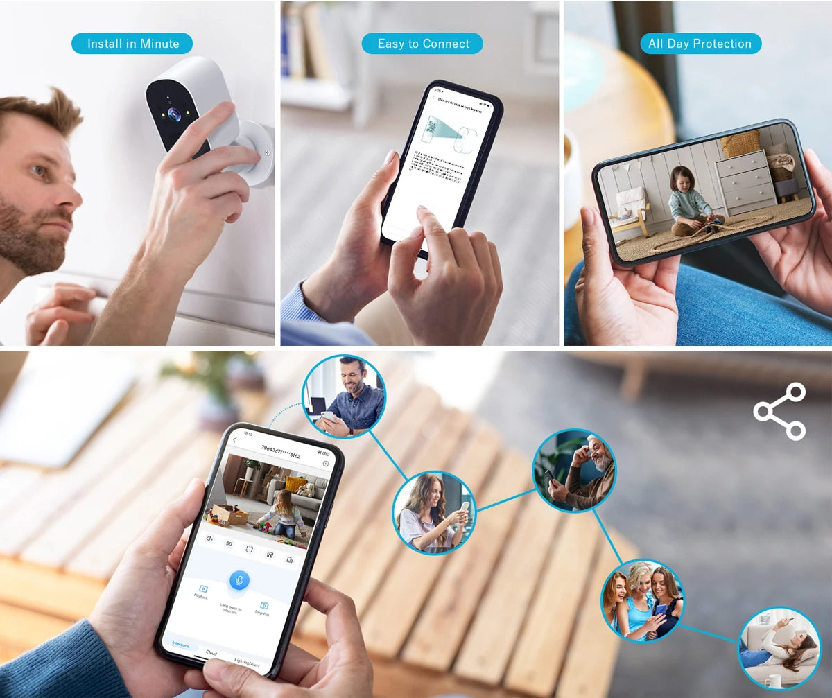 WiFi Solar Camera, Outdoor Wireless Solar IP Camera, 2K Built-in Battery Video Surveillance Camera, Colorful Night Vision, Outdoor Waterproof, Two-way audio intercom