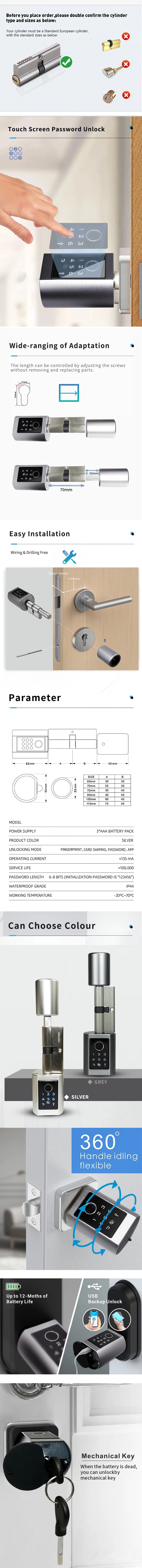TTlock BLT APP Smart Cylinder Door Lock Bluetooth APP Waterproof Electronic Digital Password Card Mechanicak Key Unlock Home