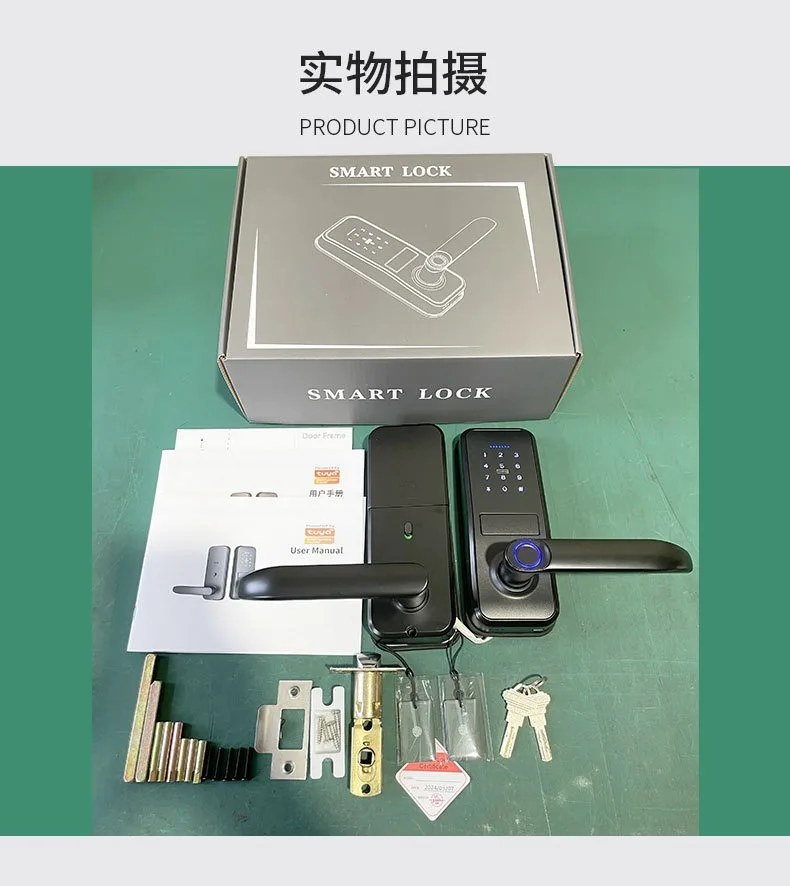 Unlocking mode:Fingerprint/Password/Swipe card/Key/TUYA APP(optional/TT lock APP (optional)