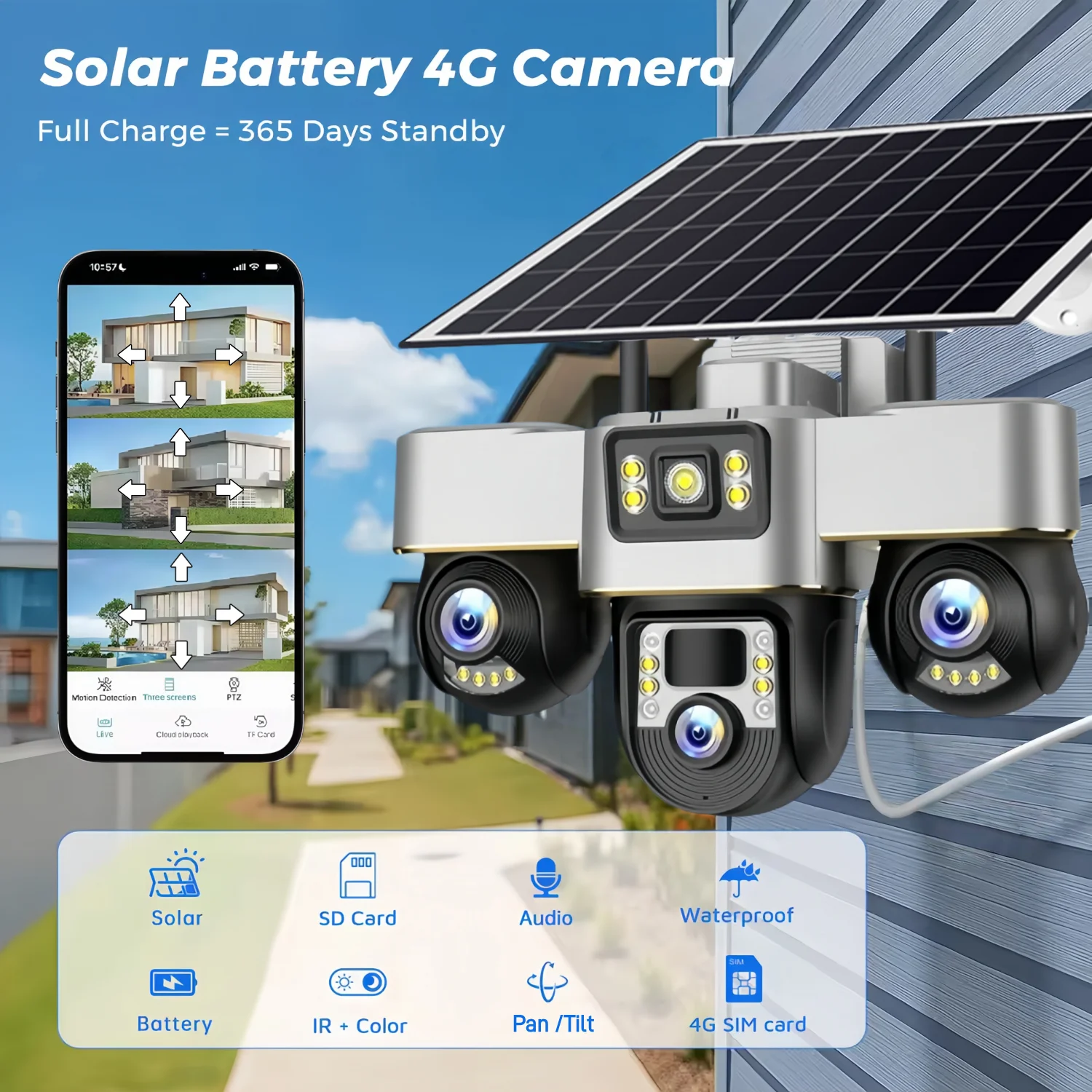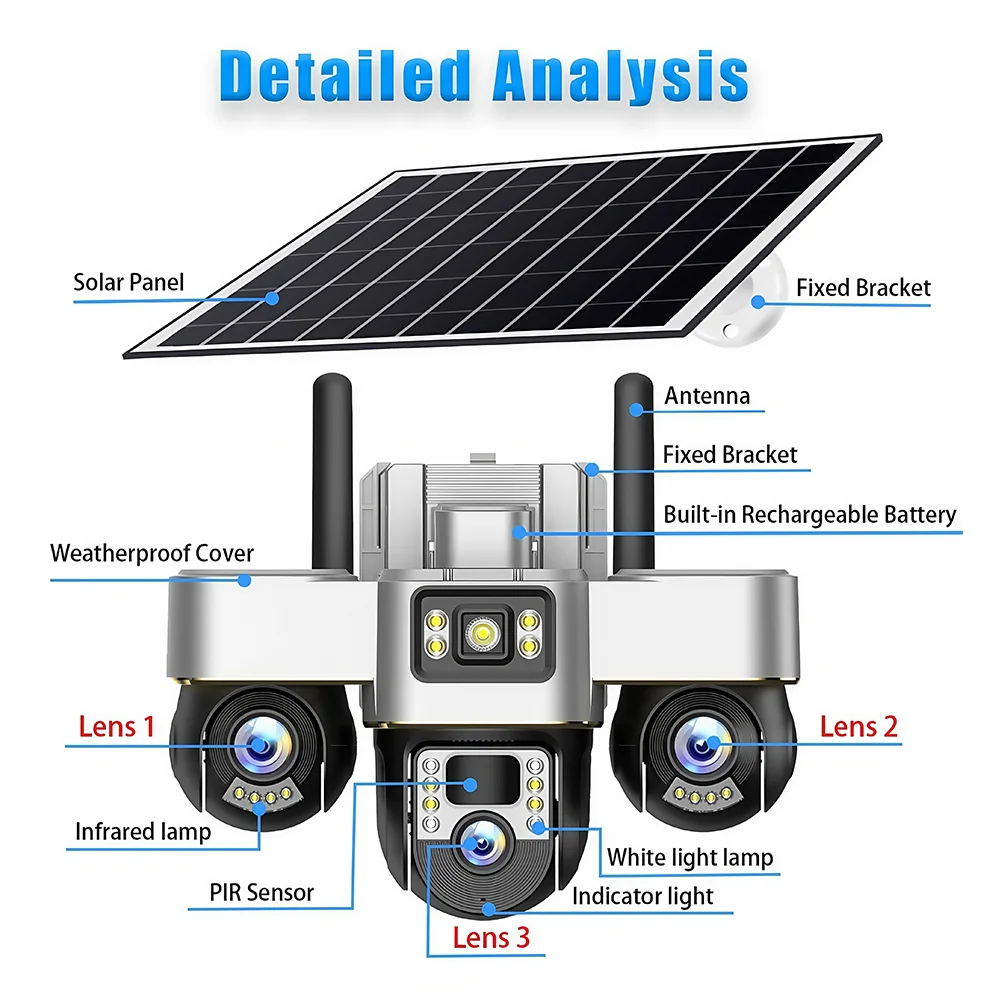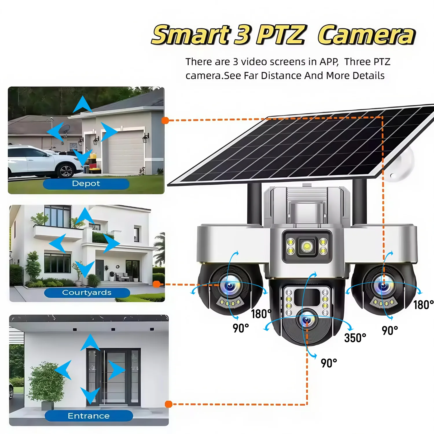 * 15 MP Three-lens, three-screen all PTZ solar camera.