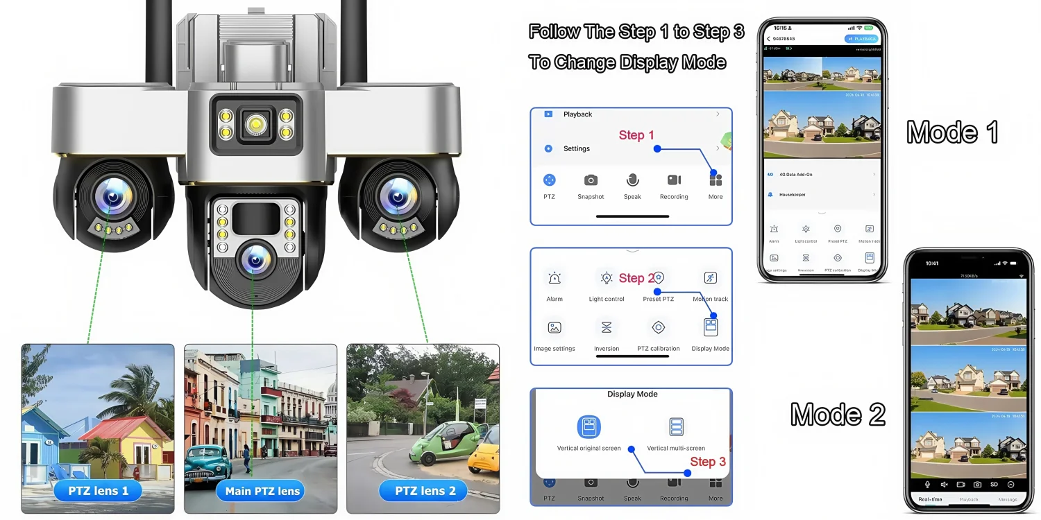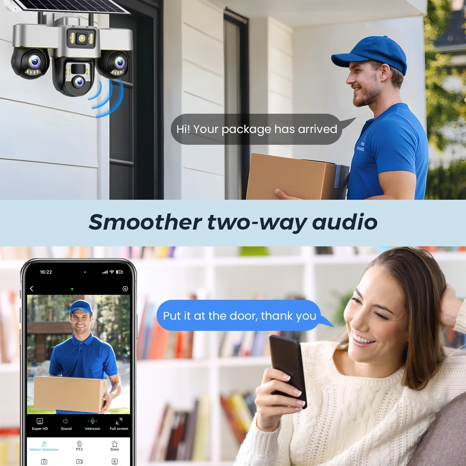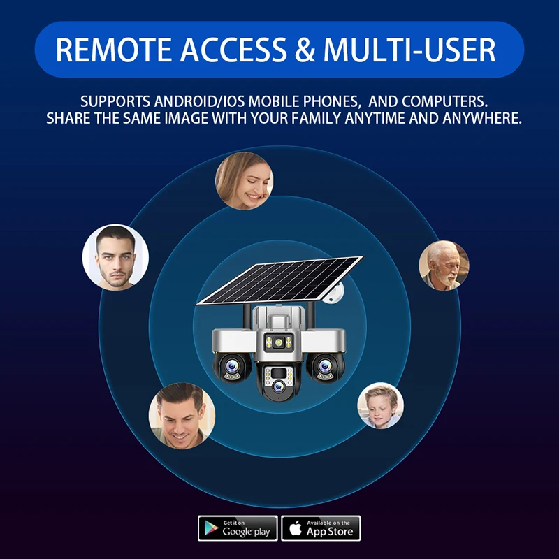 * 15 MP Three-lens, three-screen all PTZ solar camera.