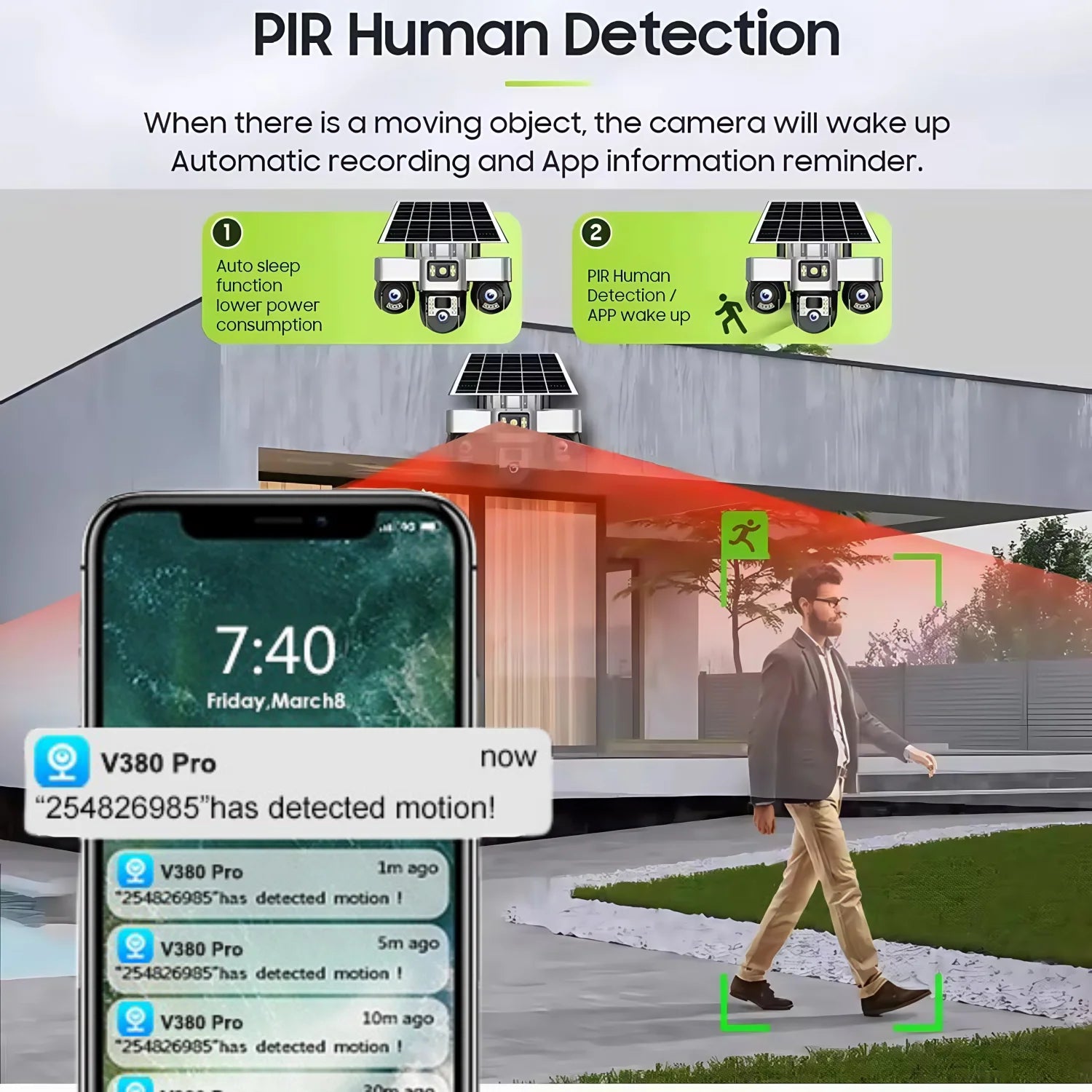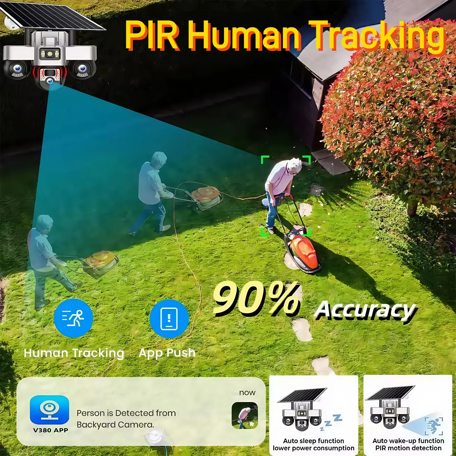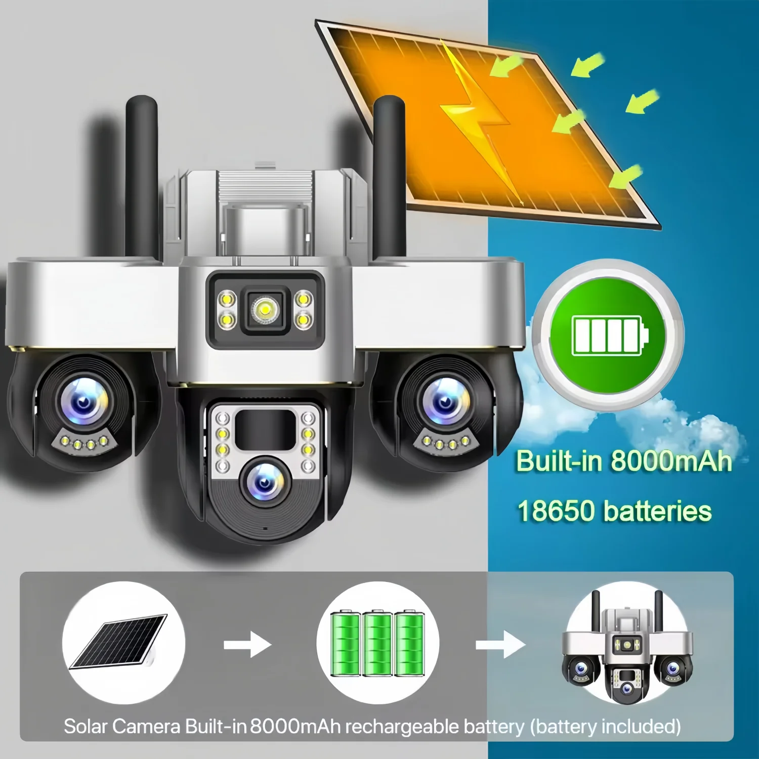 WIFI Security Solar Camera 15MP PIR Human Detection Outdoor Waterproof Monitor CCTV Night Vision 3 Motorized PTZ Lens IP Camera