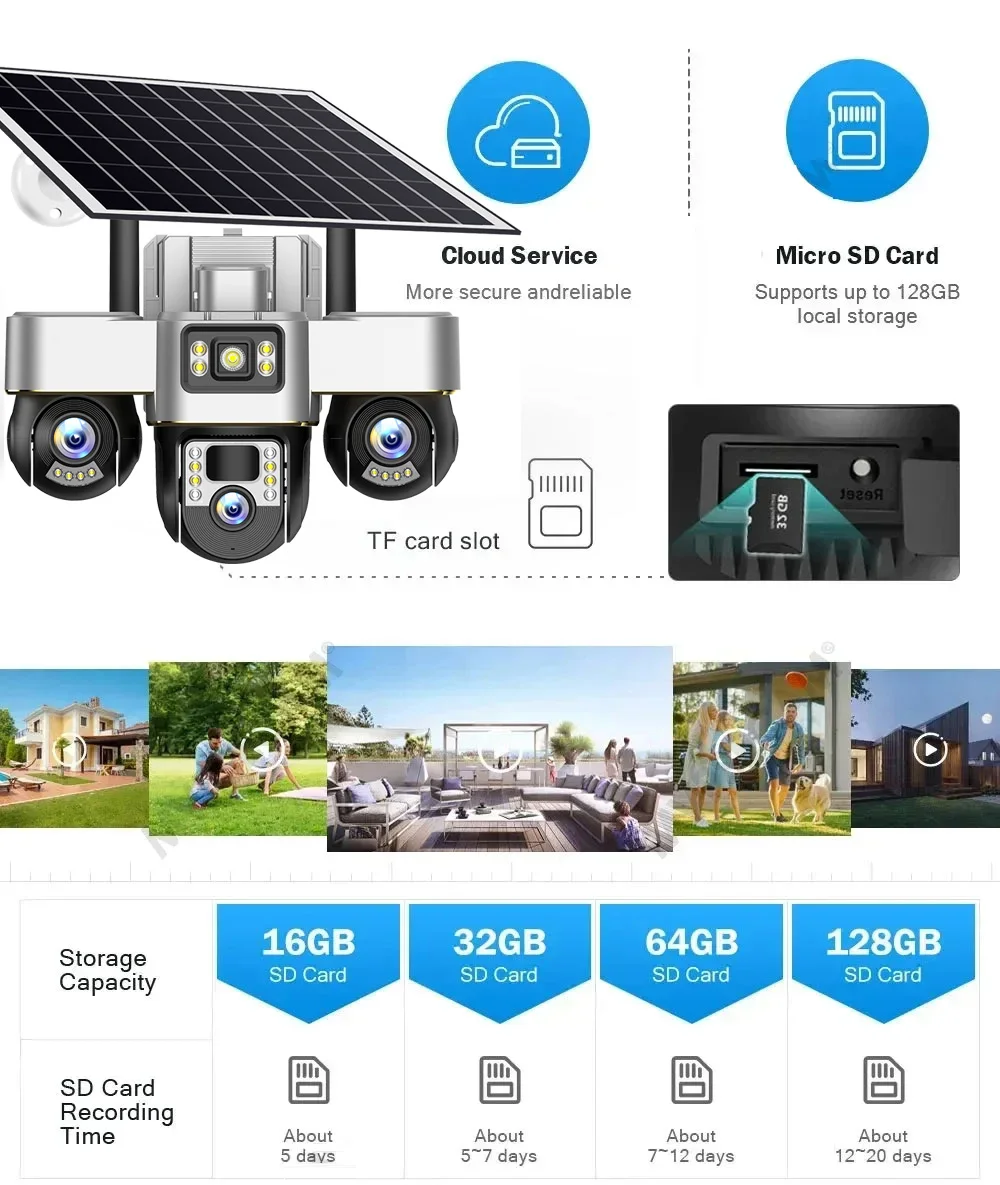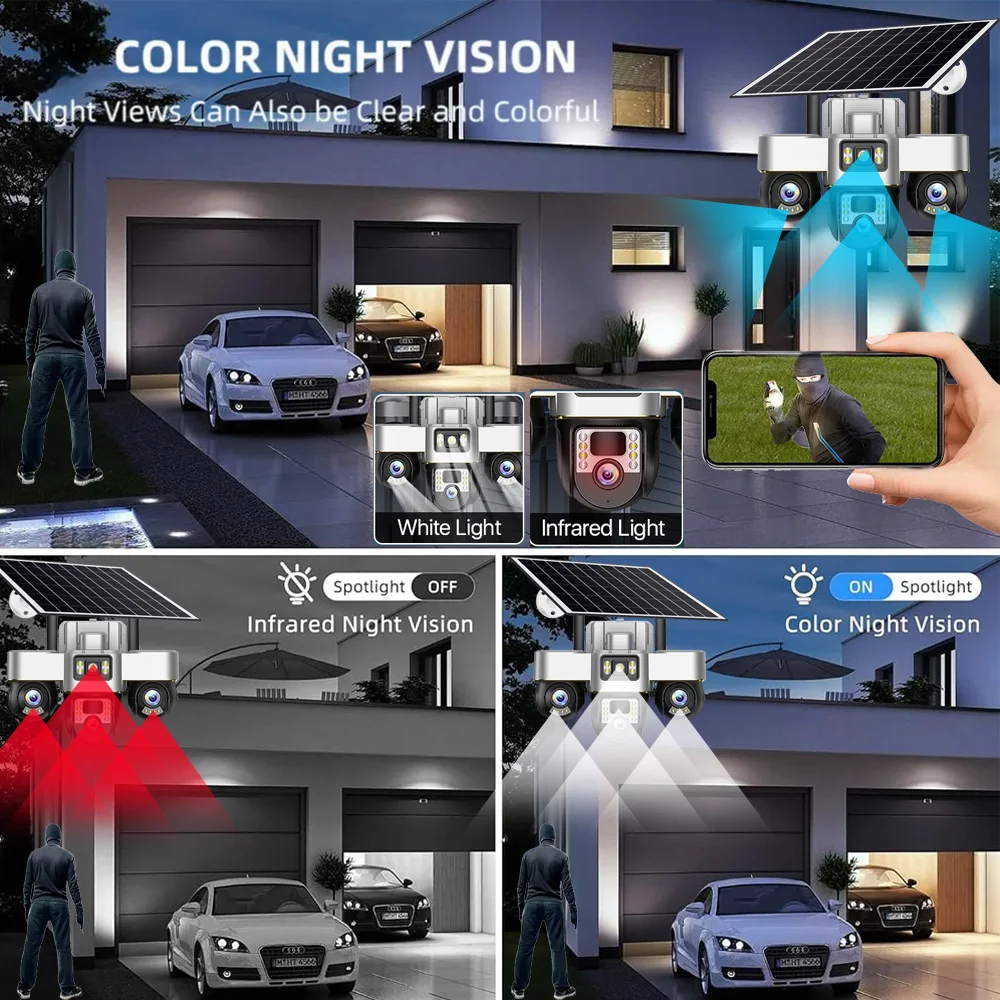 *15MP HD Triple Lenses Triple Screens Triple PTZ solar camera