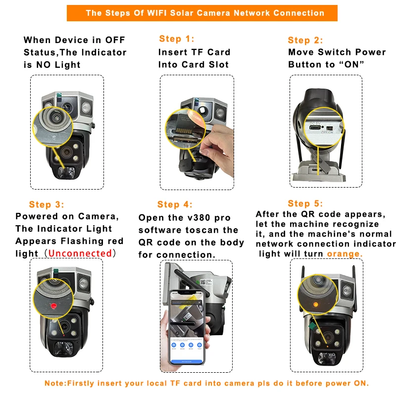*The camera can be detached with a large capacity battery (8000mah) And the top 10W solar panel is converted into energy by absorption and heat absorption to power the battery without connecting, the power supply easy to navigate.