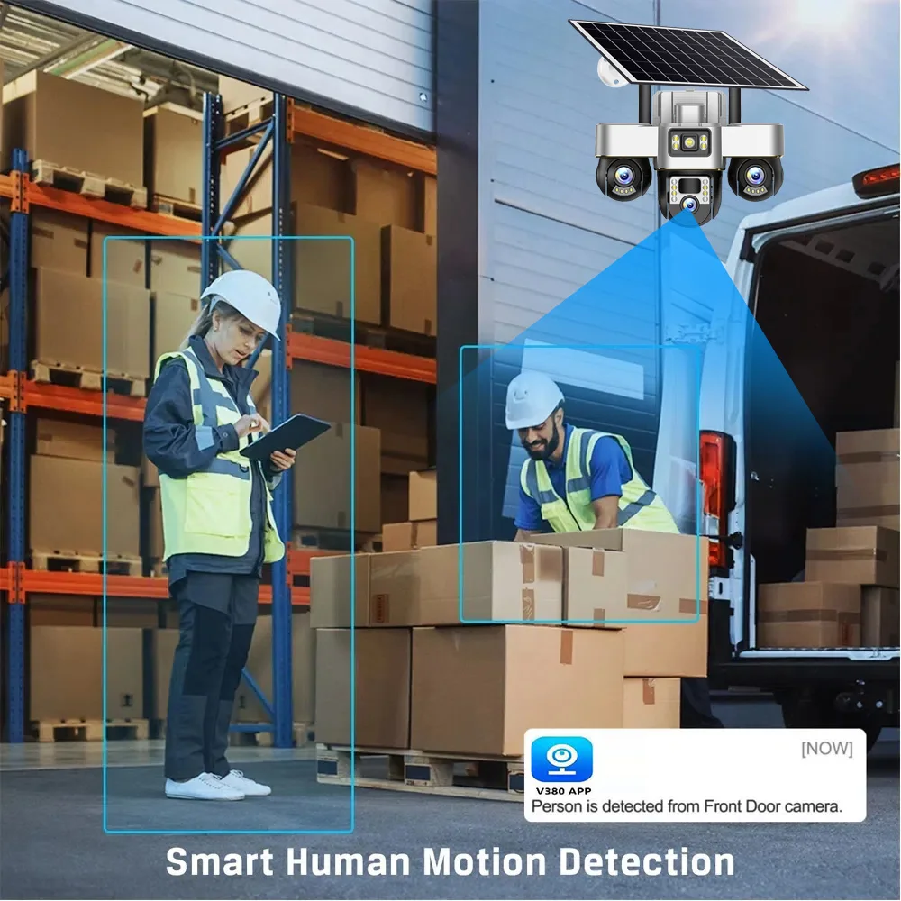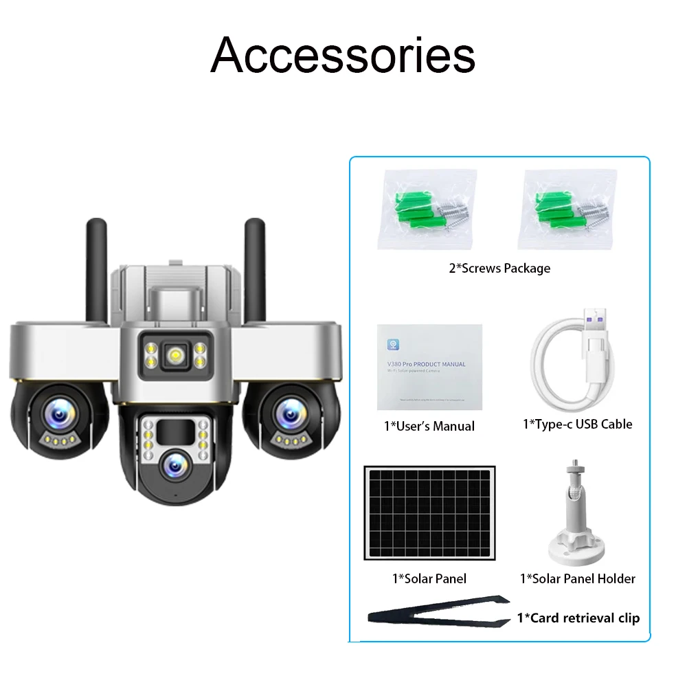 WiFi Security Solar Camera 3 Lens PTZ Outdoor IP66 15MP Motion Detection PIR Night Vision Solar Panel Monitor Multi Scene CCTV