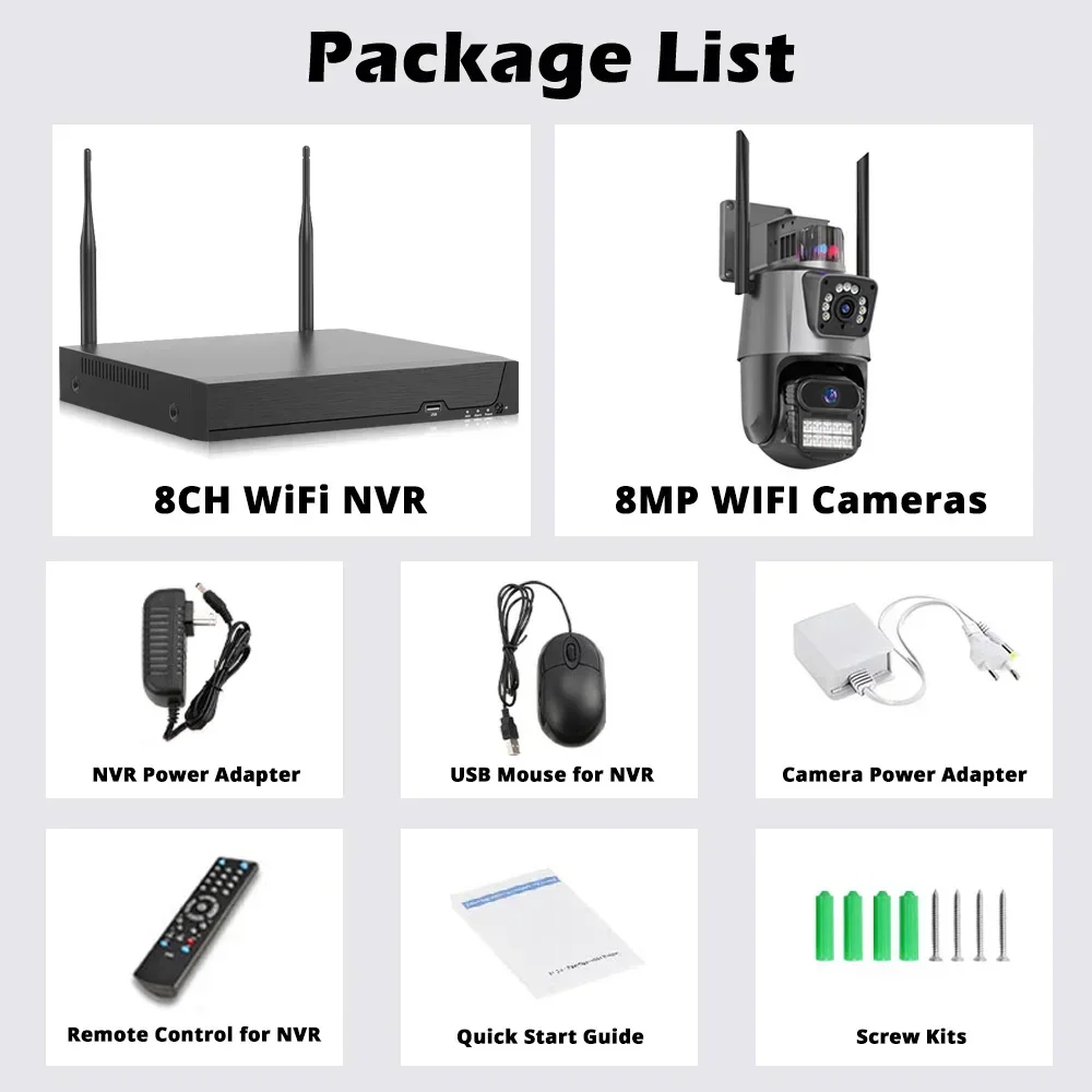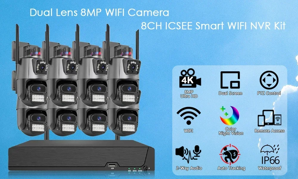 Wifi Surveillance Cameras System 8CH WIFI NVR 4K HD Waterproof Outdoor Wireless Security Camera Kit PTZ Two Way Audio ICSee APP