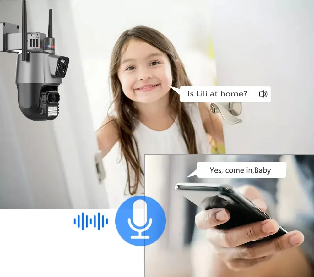 Camera is built with microphone and speaker. So you can talk to your kids via your Smartphone remotely whenever you want.