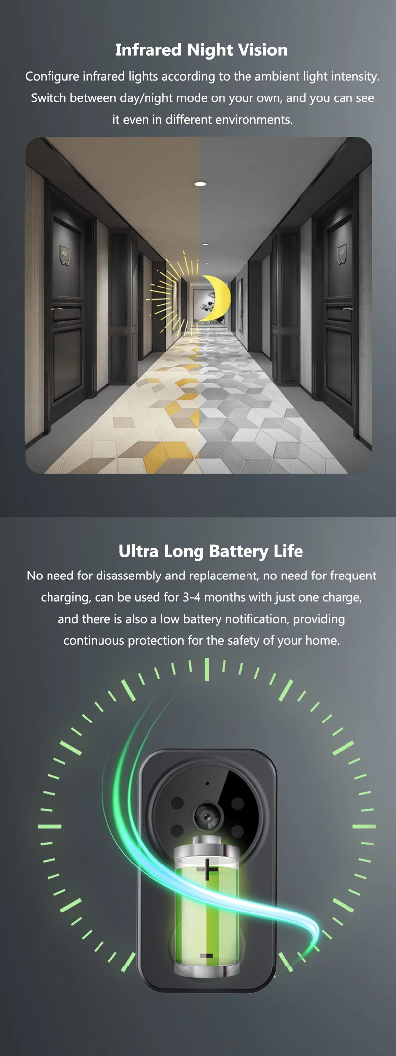 Storage: No memory card required, it will automatically capture and save the capture records of visitors in the past 3 days.