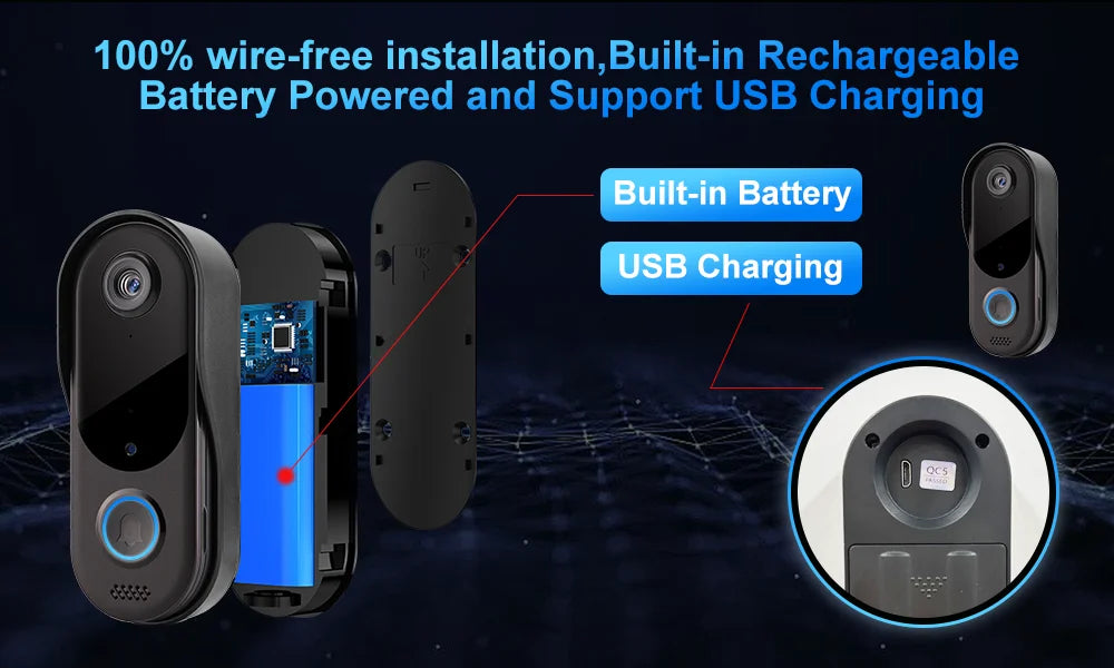 Wireless WiFi Video Intercon Doorbell Camera Rechargeable Battery Powered Doorbell For Home Security Wireless Door Bell