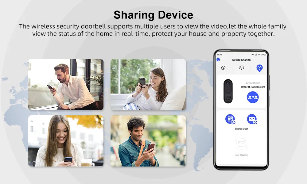 - Sharing device. You can sharing the doorbell with your families