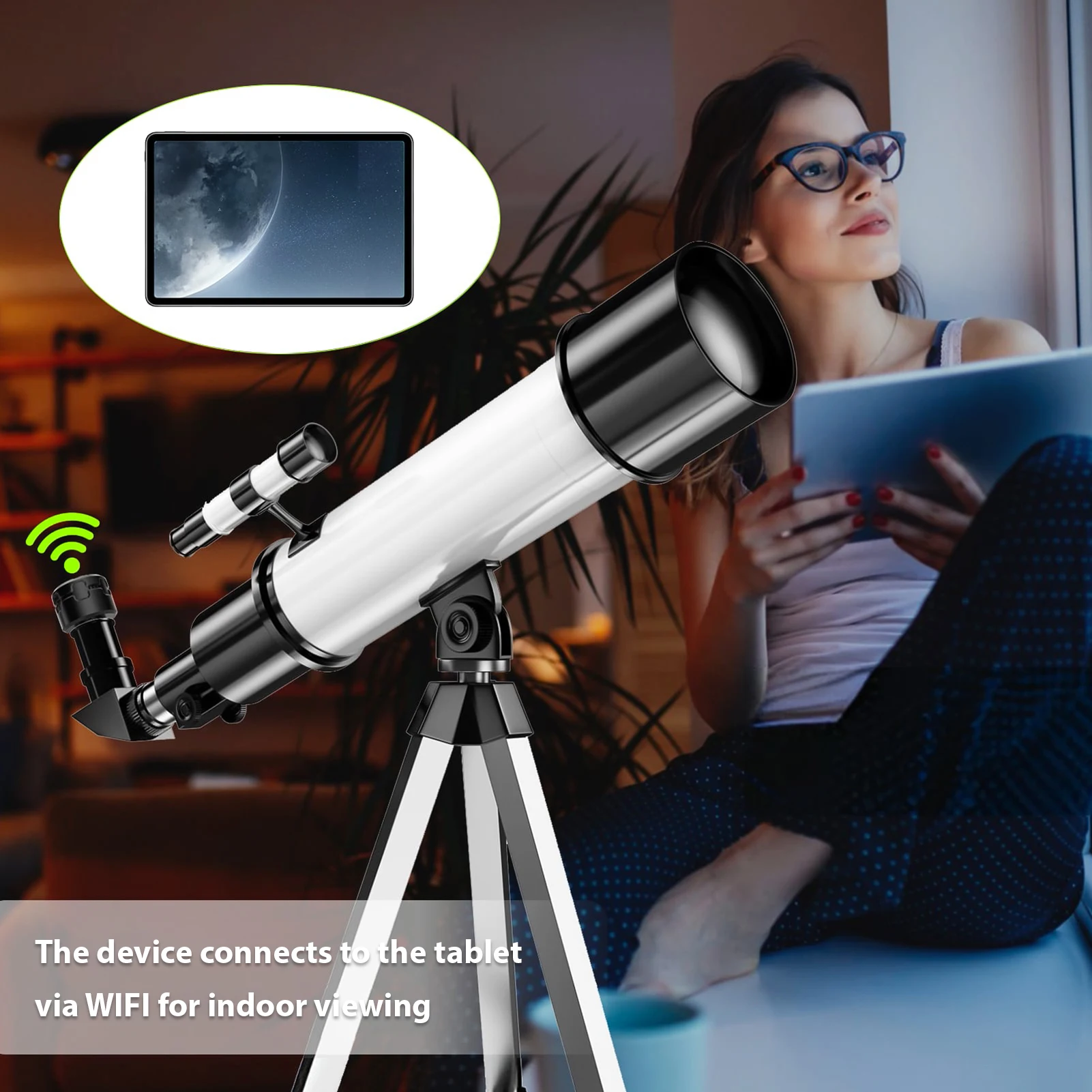 1. Digital Eyepiece for Telescope: The digital eyepiece compatible with telescope with 1.25 inch barrel, provides a basic method for beginners to observe astronomical scenes easily.2. WiFi Connection: Supporting WiFi connection, you can connect this digital telescope eyepiece directly with your smartphone or tablet for real-time viewing, image capturing and video recording conveniently.