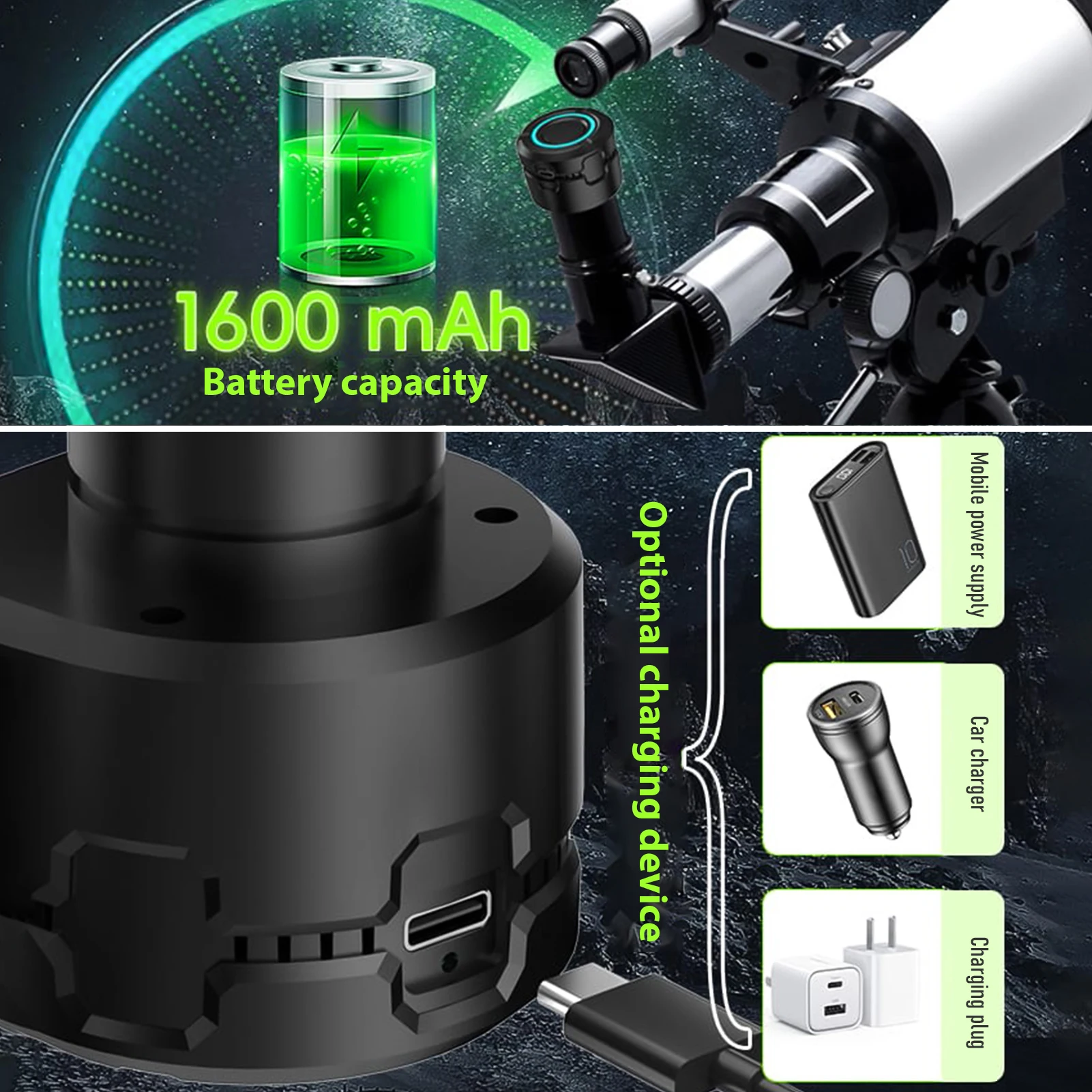 3. Built-in Lithium Battery: The electronic eyepiece camera has a built-in 1600mAh lithium battery that supports long usage time and can be recharged via the included Type-C charging cable.